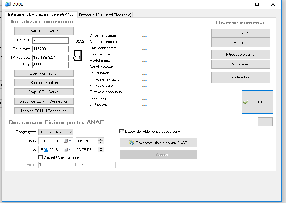 Precizam de la inceput ca fiecare tip de casa de marcat are soft-ul propriu de interfata. Preluarea fisierelor se va face utilizand soft-ul pus la dispozitie de catre furnizorul de case de marcat.