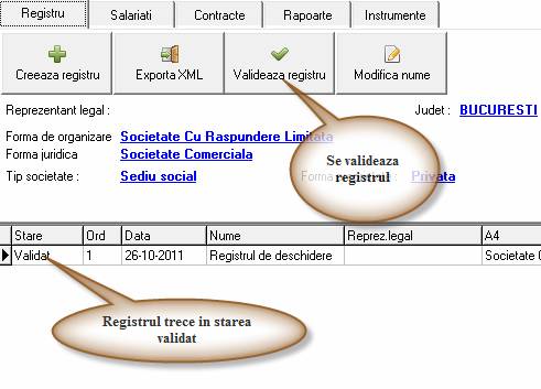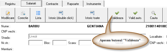 Validarea salariatilor - se intra pe felia "Salariati" si se apasa butonul "Valideaza"
