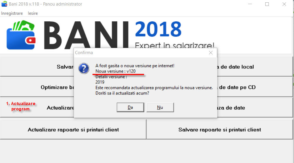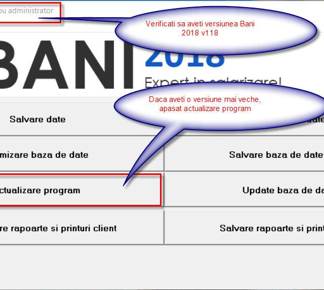 Actualizati mai intai sistemul la versiunea Bani 2018v.118 (Panou administrator - Actualizare program)